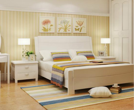 实木床 橡木床 双人床 现代简约 白色床 1.5 1.8米可配高箱